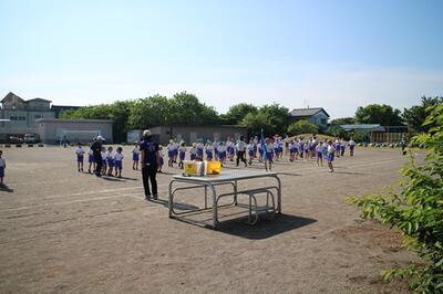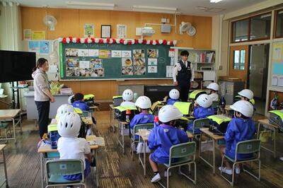 駐在所の笠井さんにお越しいただき、1年生に交通安全のお話を